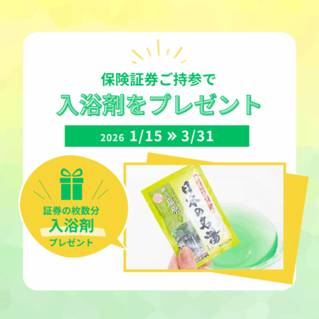 保険証券をご持参いただいたお客さまに、証券枚数分の入浴剤をプレゼントいたします♪